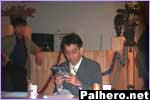 听到之后立刻准备采访,匆忙的把器材准备好,还想了一些问题。周一下午,来到晶合,一楼右侧就是这次中文武侠RPG研讨会及霹雳奇侠传发布会的会场。里面已经有不少人在了。签了名字坐下,和几个熟人打着招呼。过了一会只见一个穿着风衣的消瘦男人走进来,身边就有人悄悄的指——那就是姚壮宪。
